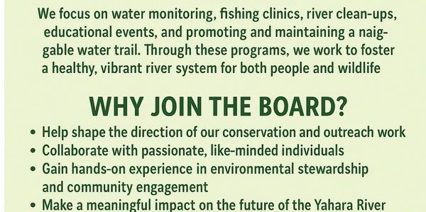 We focus on water monitoring, fishing clinics, river clean-ups, educational events, and promoting and maintaining a navigable water trail.
